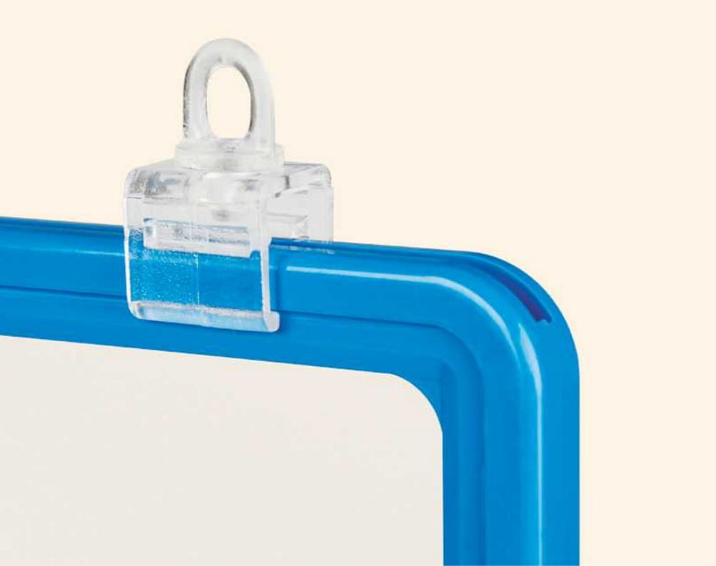 Držák s okem pro zavěšení plastových rámečků.