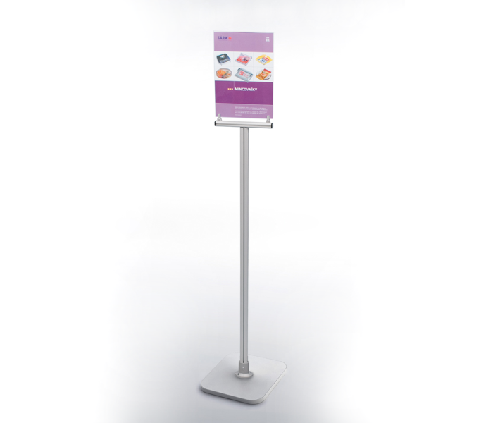 Informační stojan – volně stojící na jednu letáčku formátu A4 nebo tabulku s tiskem.