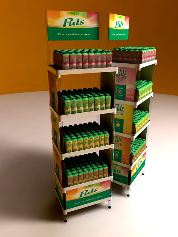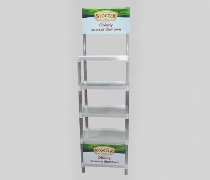 Regál je dodáván jako sada k jednoduché montáži. Skvělé řešení pro mobilní a sezónní prezentaci zboží.