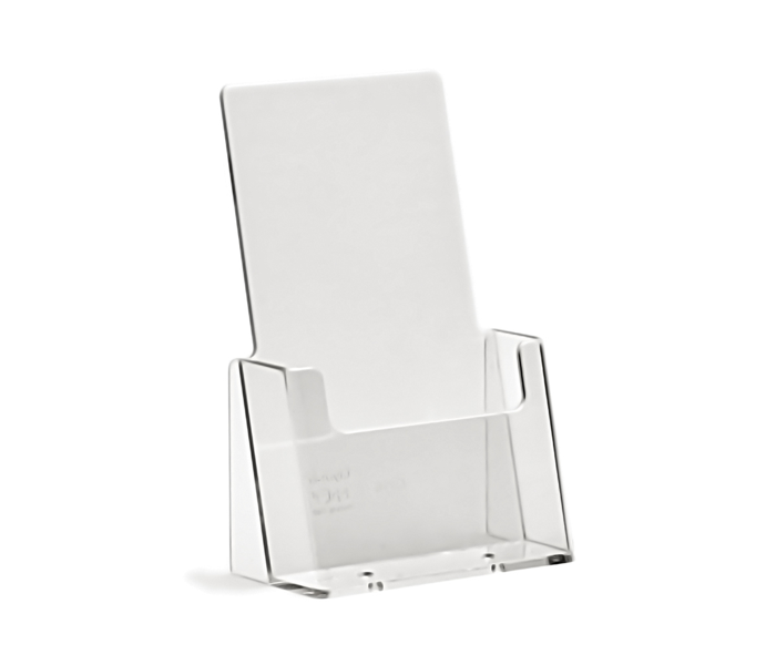 Jednoduchý stojan na letáky DL, vyrobený z odlévaného plexiskla.