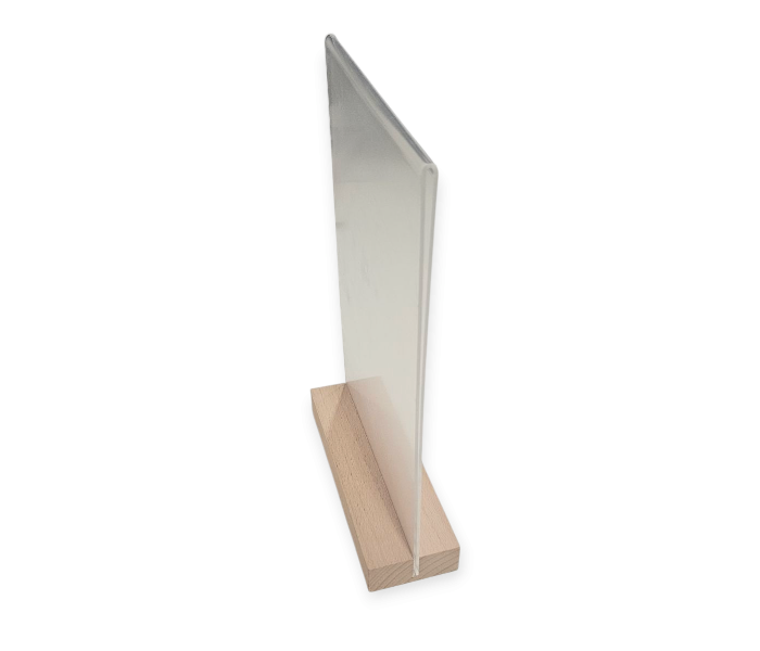 Oboustranný stojánek na leták formátu A5 s dřevěnou základnou